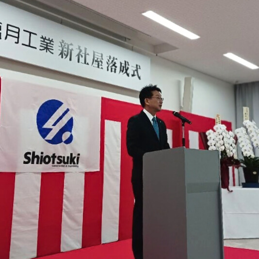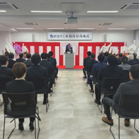 今日まで数多くの実績を築き上げてこられた創業者の塩月勇司会長をはじめ、長年にわたり会社を支えてくださった諸先輩方への感謝の気持ちを胸に、私たちは新たな環境でさらなる発展を目指すとともに、新社屋が、新しい時代を切り開く象徴として輝き続けるよう、社員一同より一層精進してまいります。