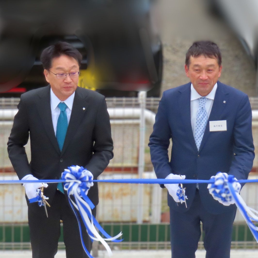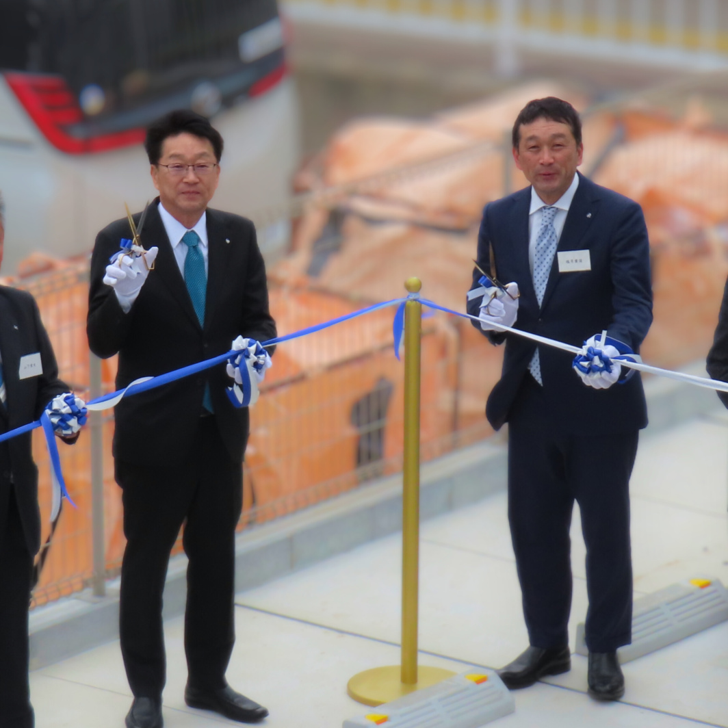 式典では、社員全員によるテープカットを執り行いました。寒風が吹きつけ、天候の悪化も懸念されましたが、無事に全員で式典を挙行することができました。